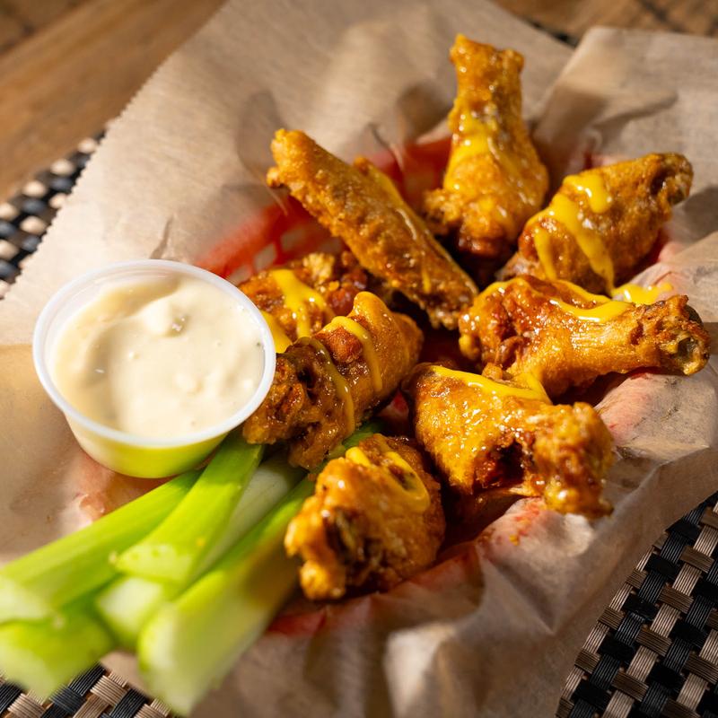 Served with your choice of sauce: Hot | Medium | Mild | Insanity | Teriyaki | BBQ | Lemon Pepper | Honey Mustard | Dry Cajun | Hot Cajun | Hot Garlic | Garlic Parmesan | Buffalo Ranch | Sweet Chili | Bourbon, Sweet Heat